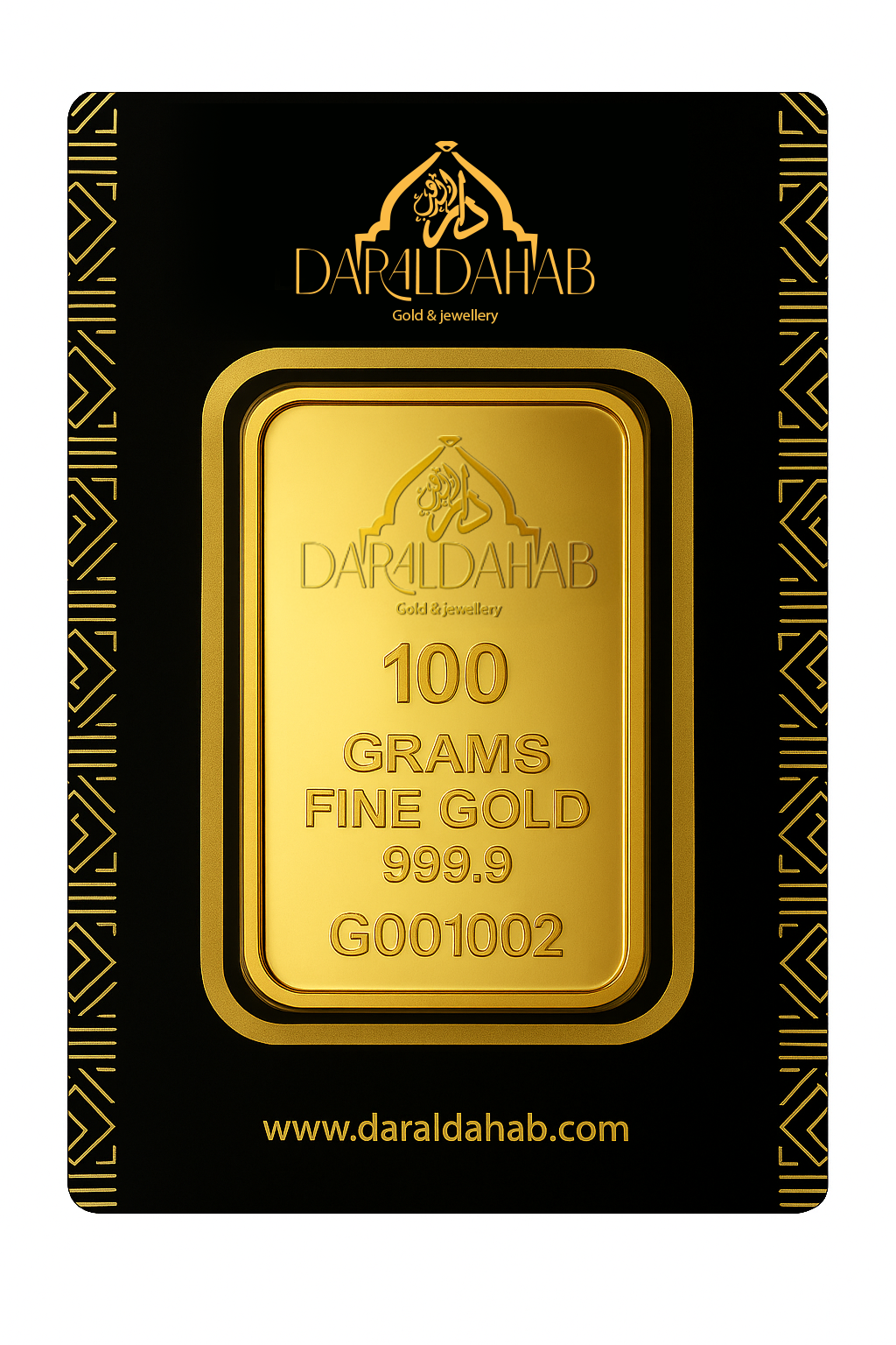 This 100 gram bar from Dar Al Dahab, sold exclusively by Gram Gold in Egypt, is pure 24 K (999.9) gold in a sleek package, perfect for starting your investment journey.