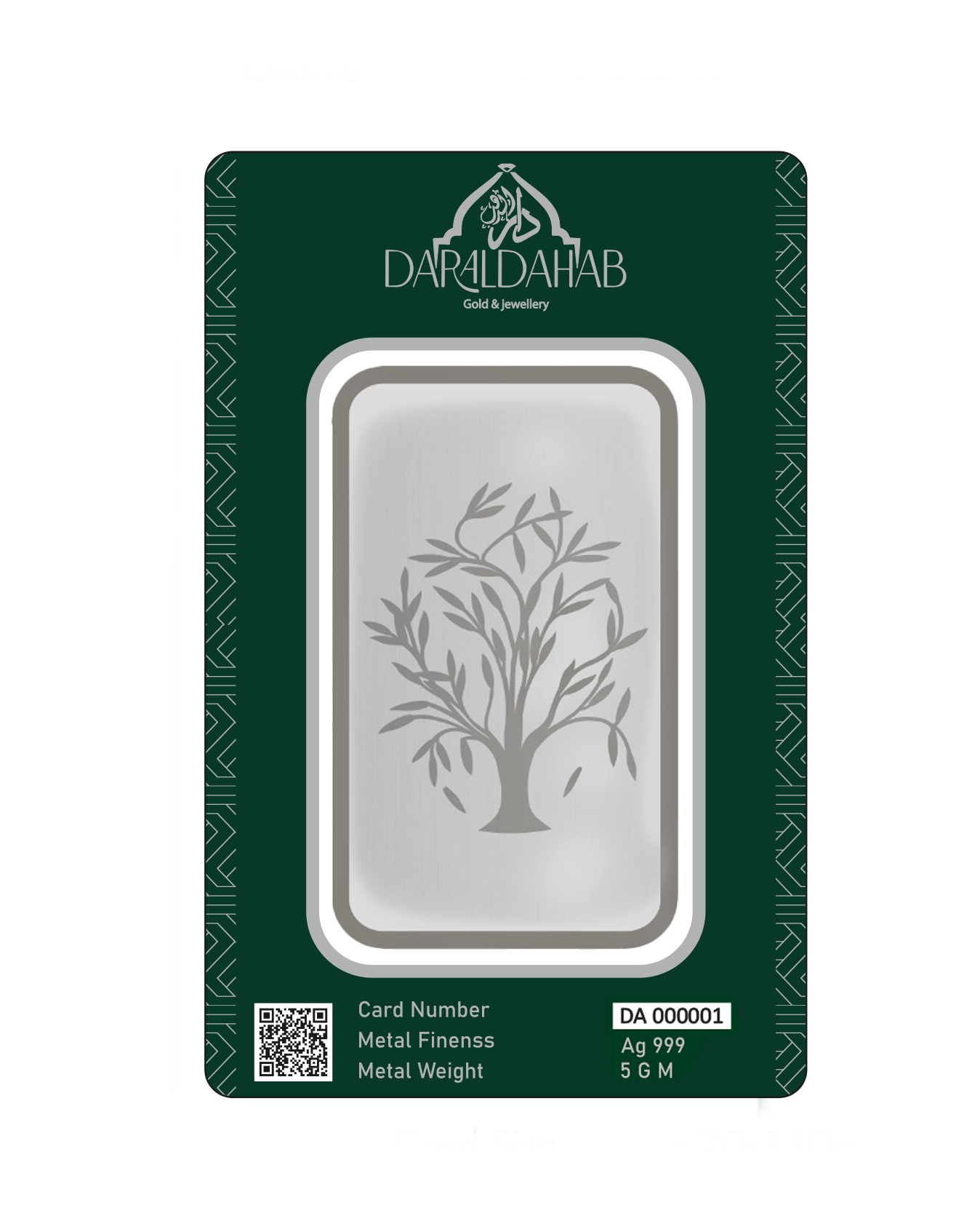 This 5 Gram silver bar from Dar Al Dahab, exclusively at Gram Gold, is made of pure silver and stamped by the Egyptian hallmarking authority. A high-grade, globally backed product?perfect for secure investment or as an elegant gift.