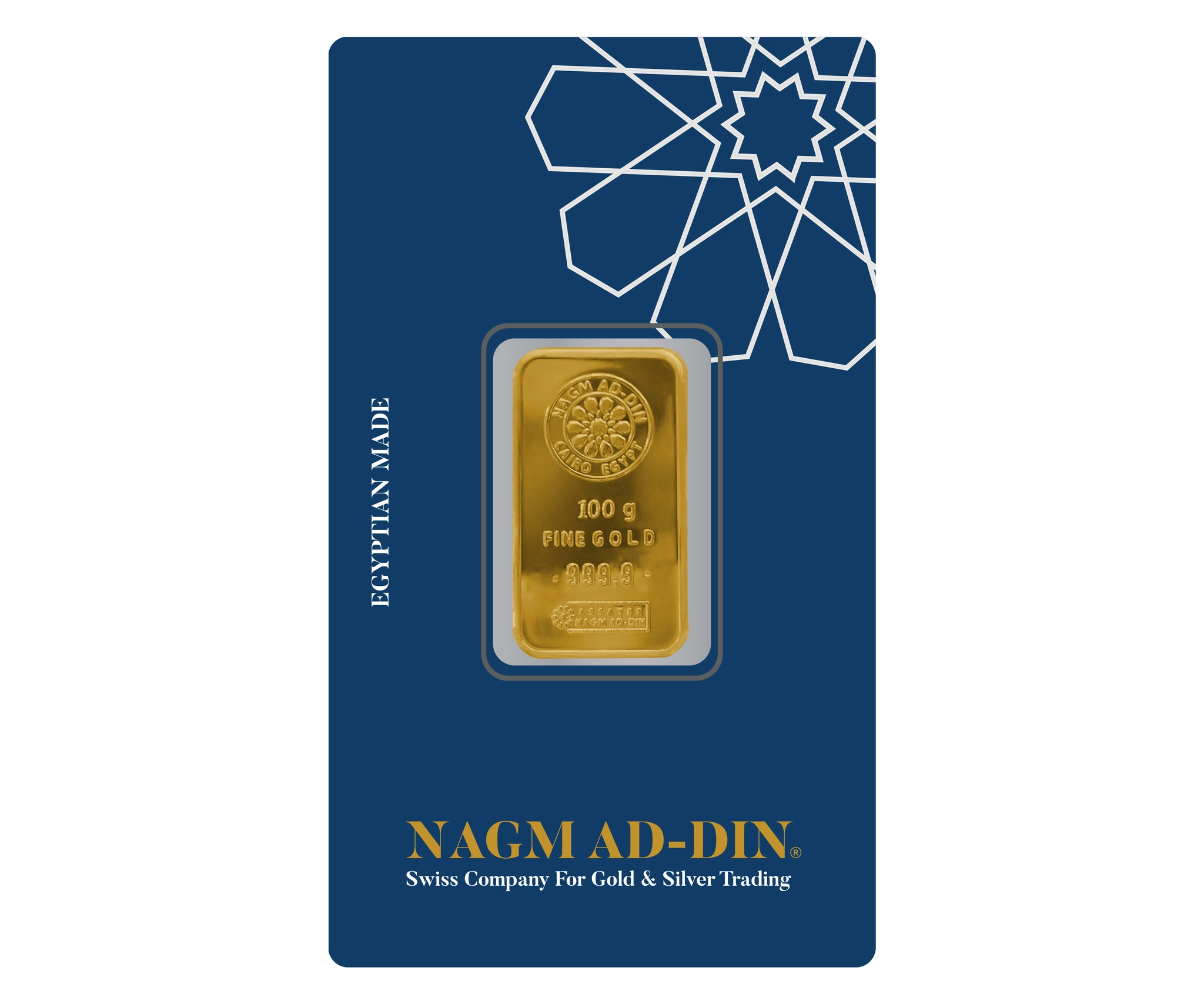 100 Gram Gold Investment Bar from NAGM AD-DIN, exclusively available at Gram Gold, includes all making and stamping fees in its price.