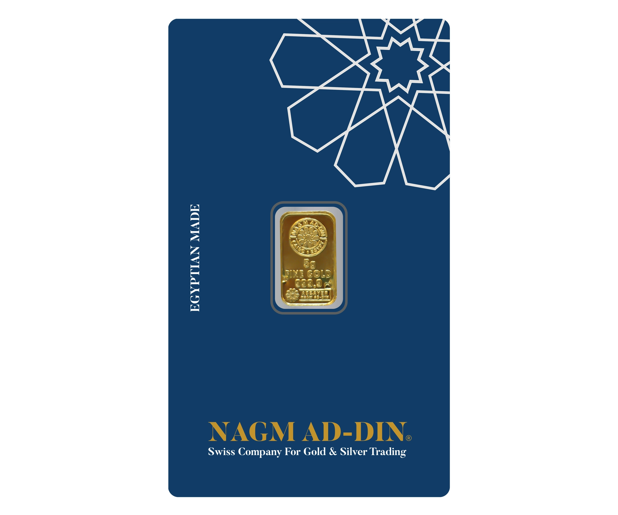 5 Gram Gold Bar from NAGM AD-DIN, exclusively available at Gram Gold, includes all making and stamping fees in its price.